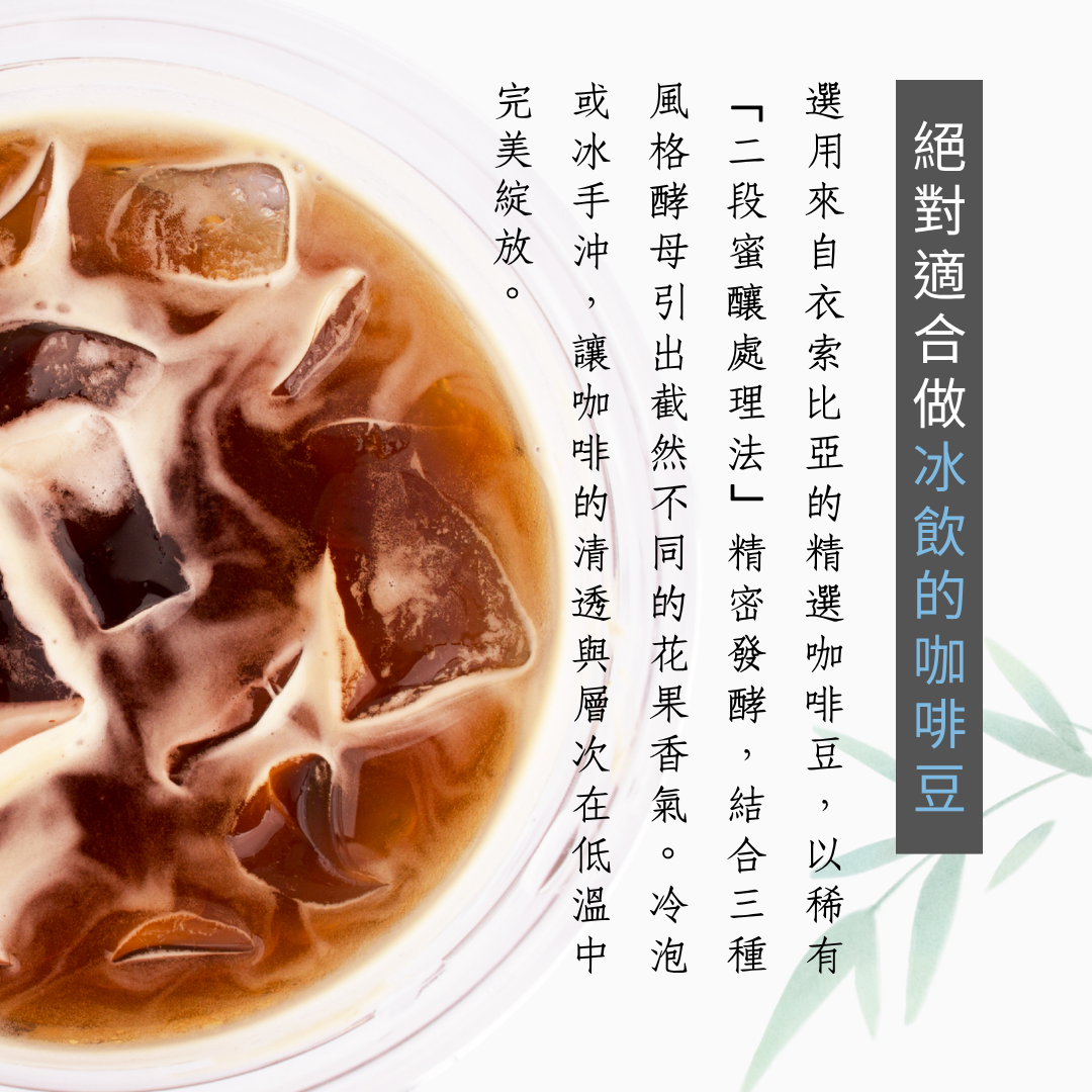 選用衣索比亞精品咖啡豆,以稀有「二段蜜釀處理法」精密發酵,